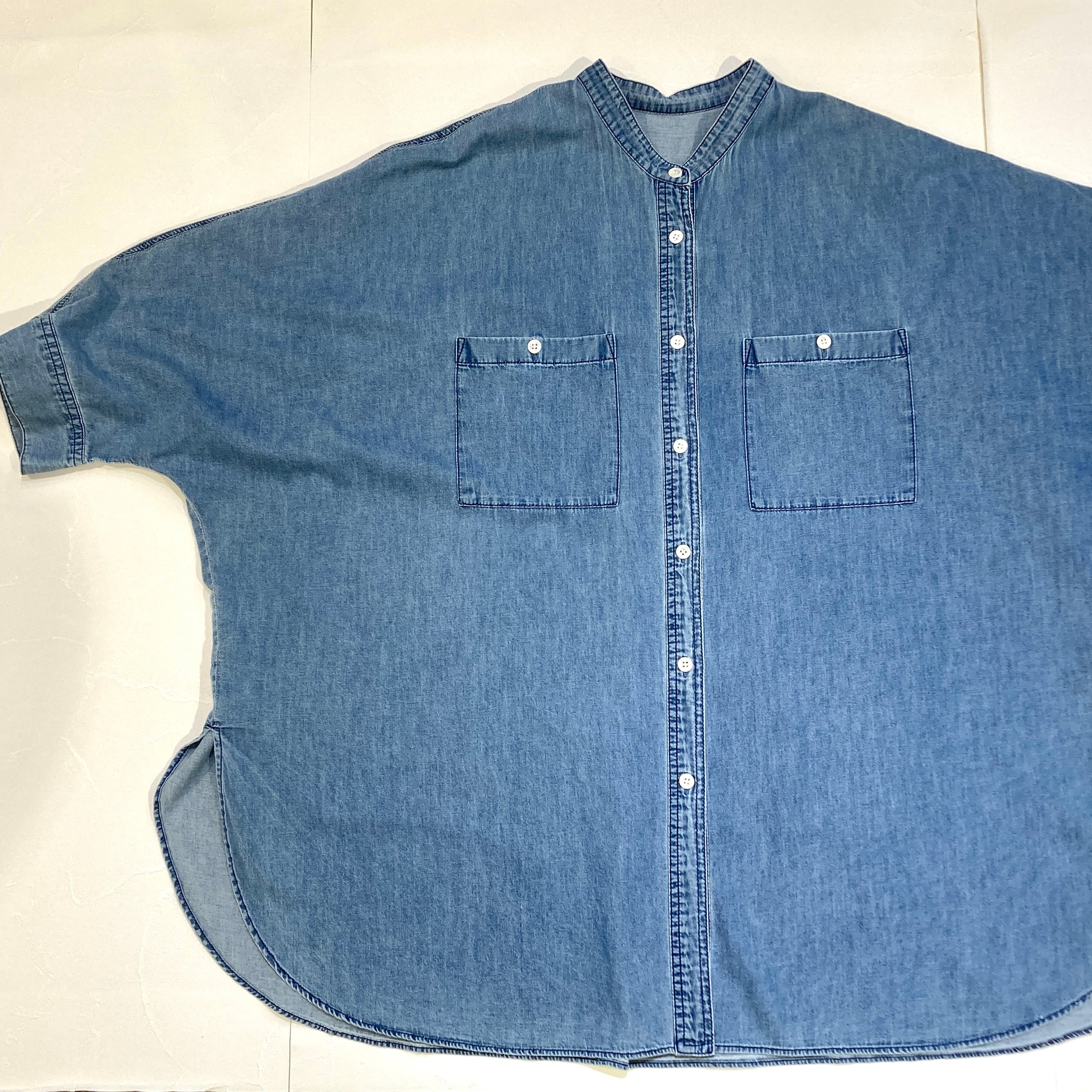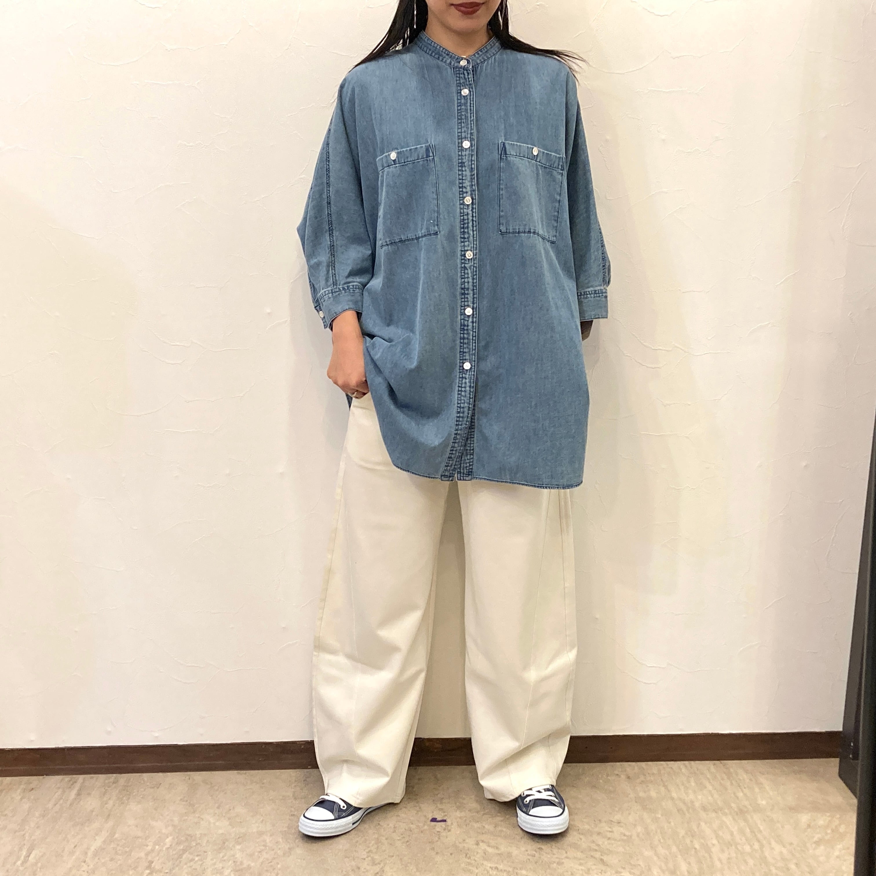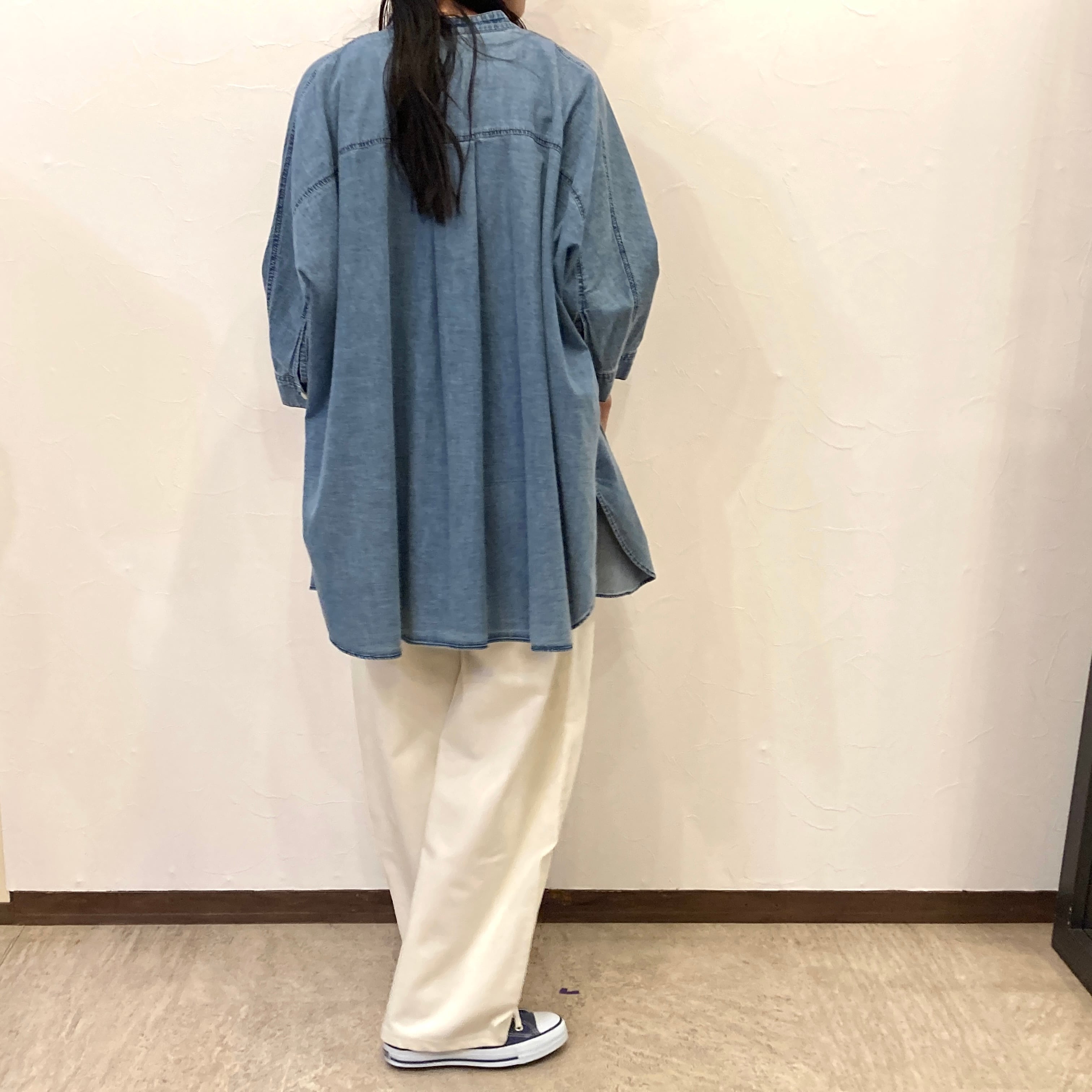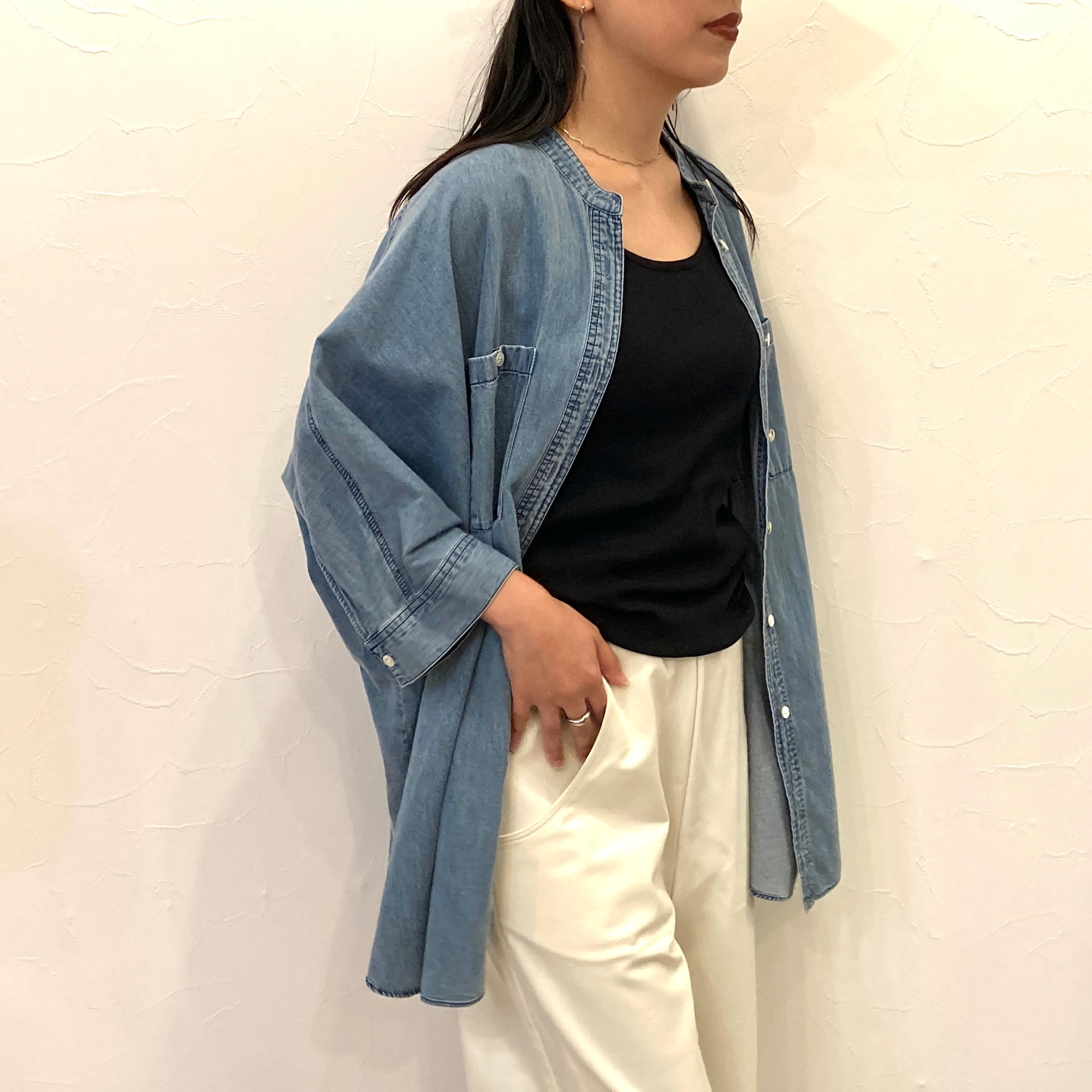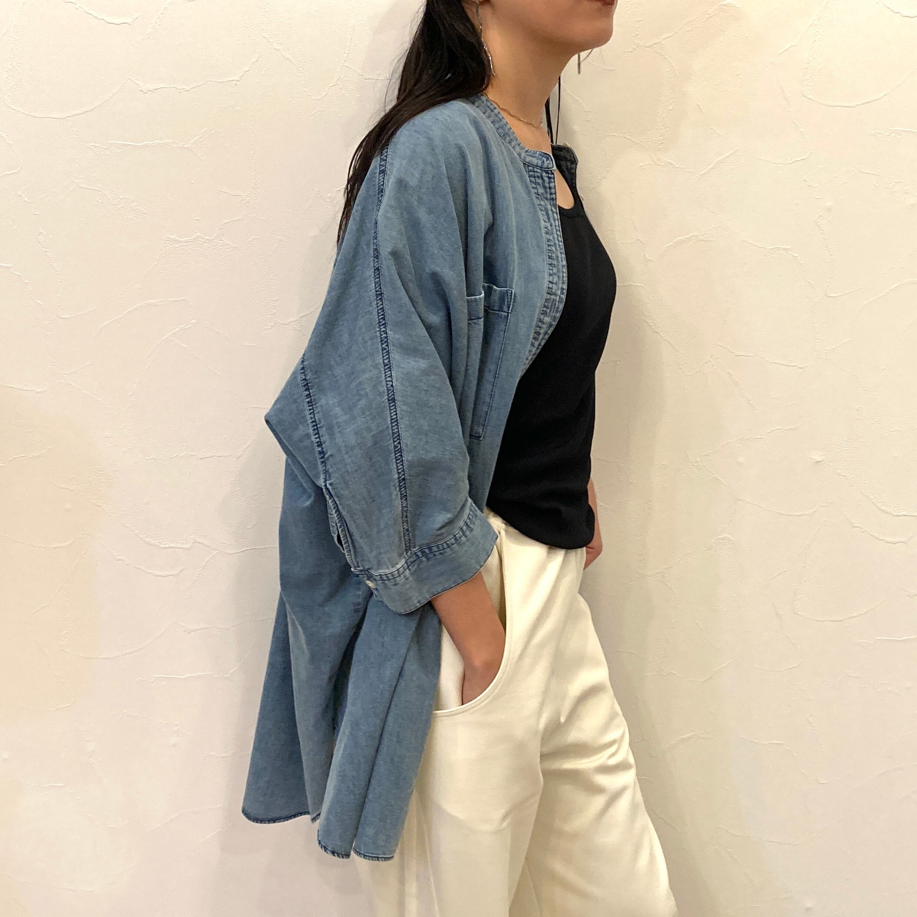 薄手の心地よいダンガリー素材を使用したバンドカラーシャツ。