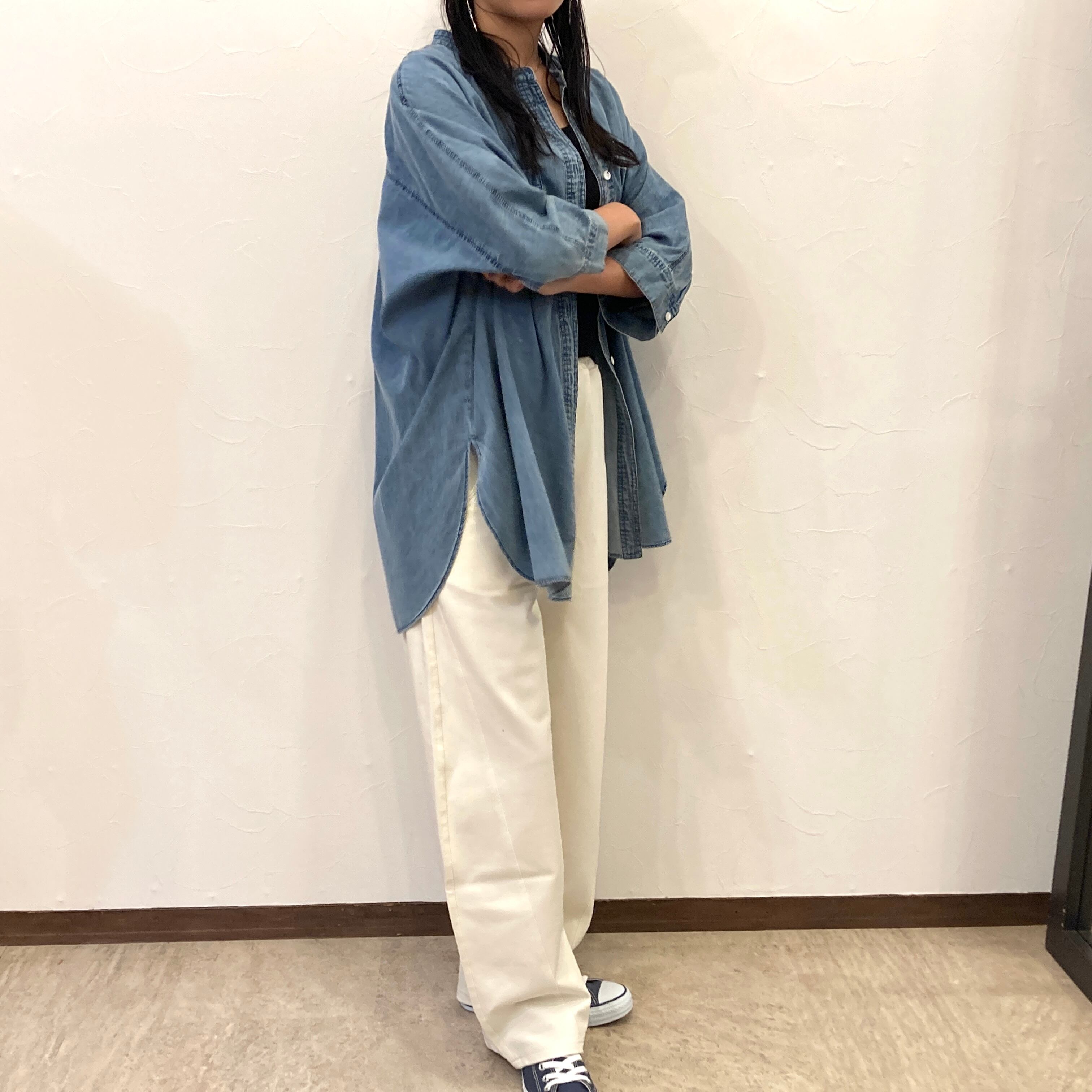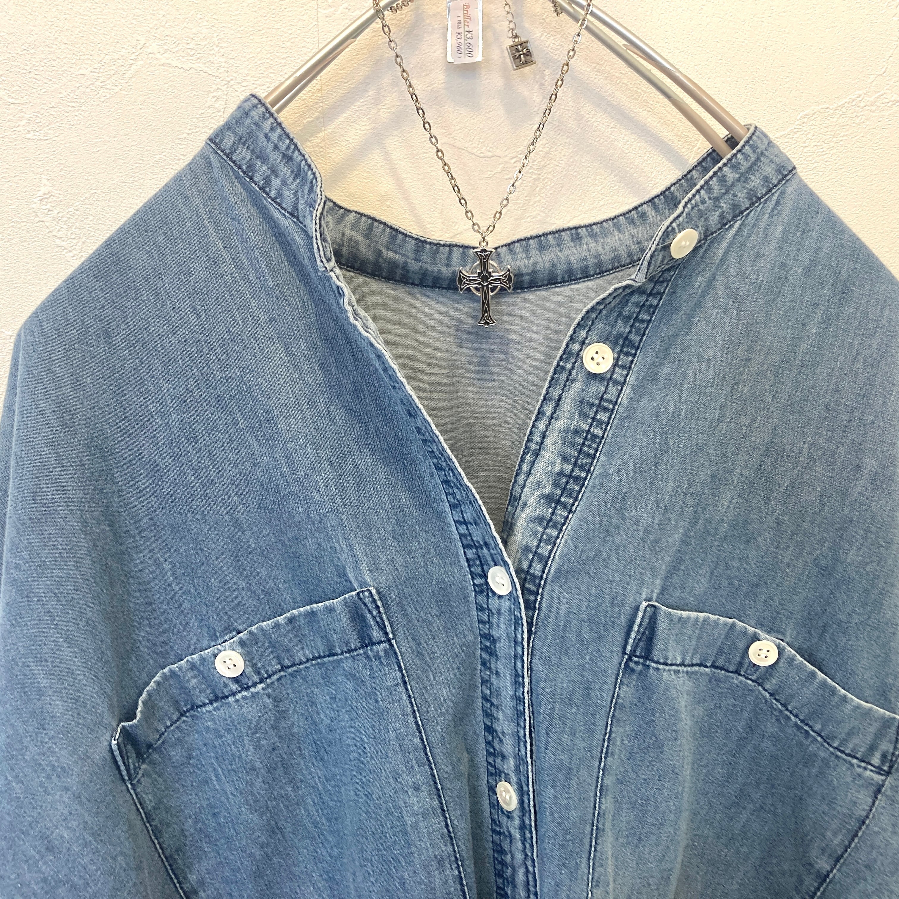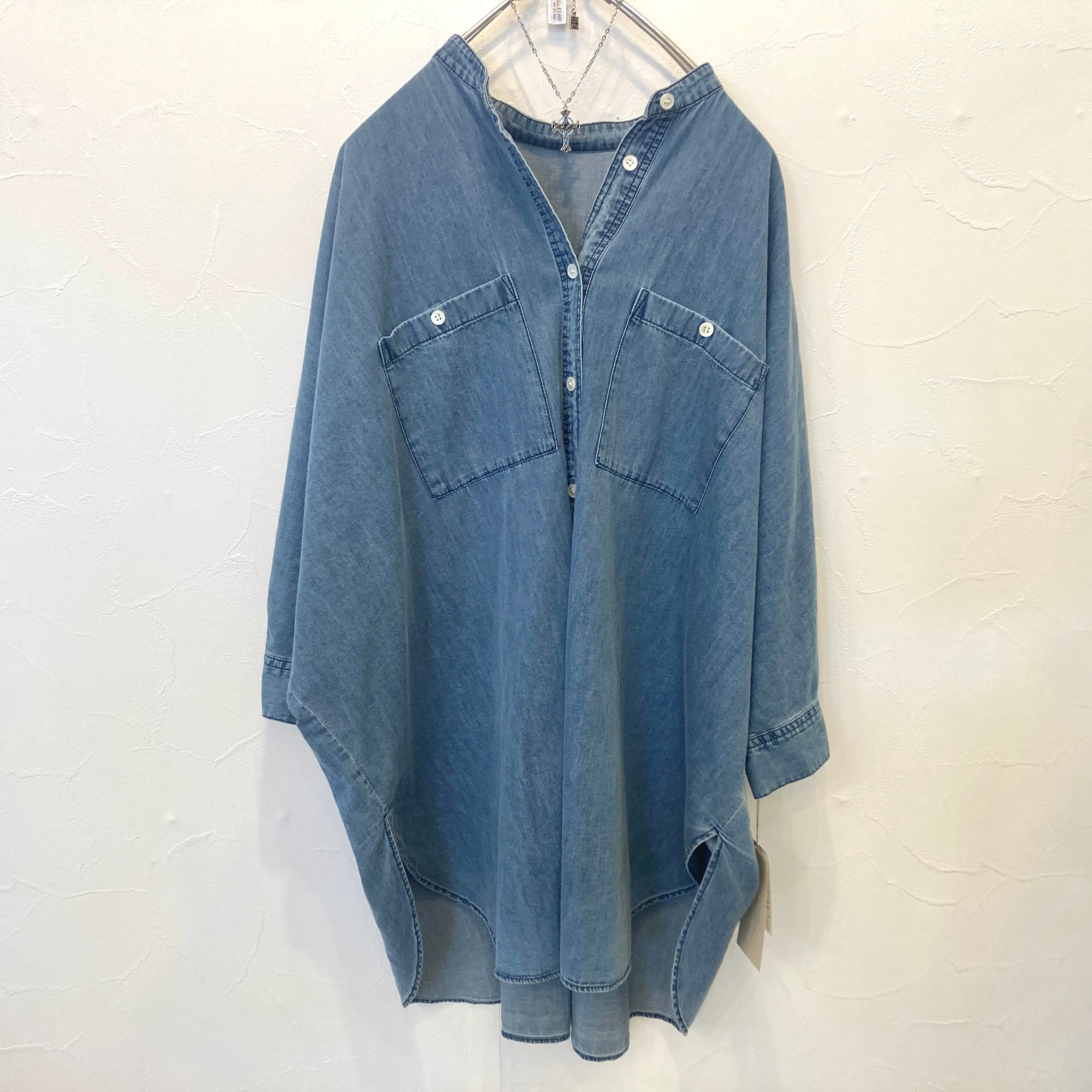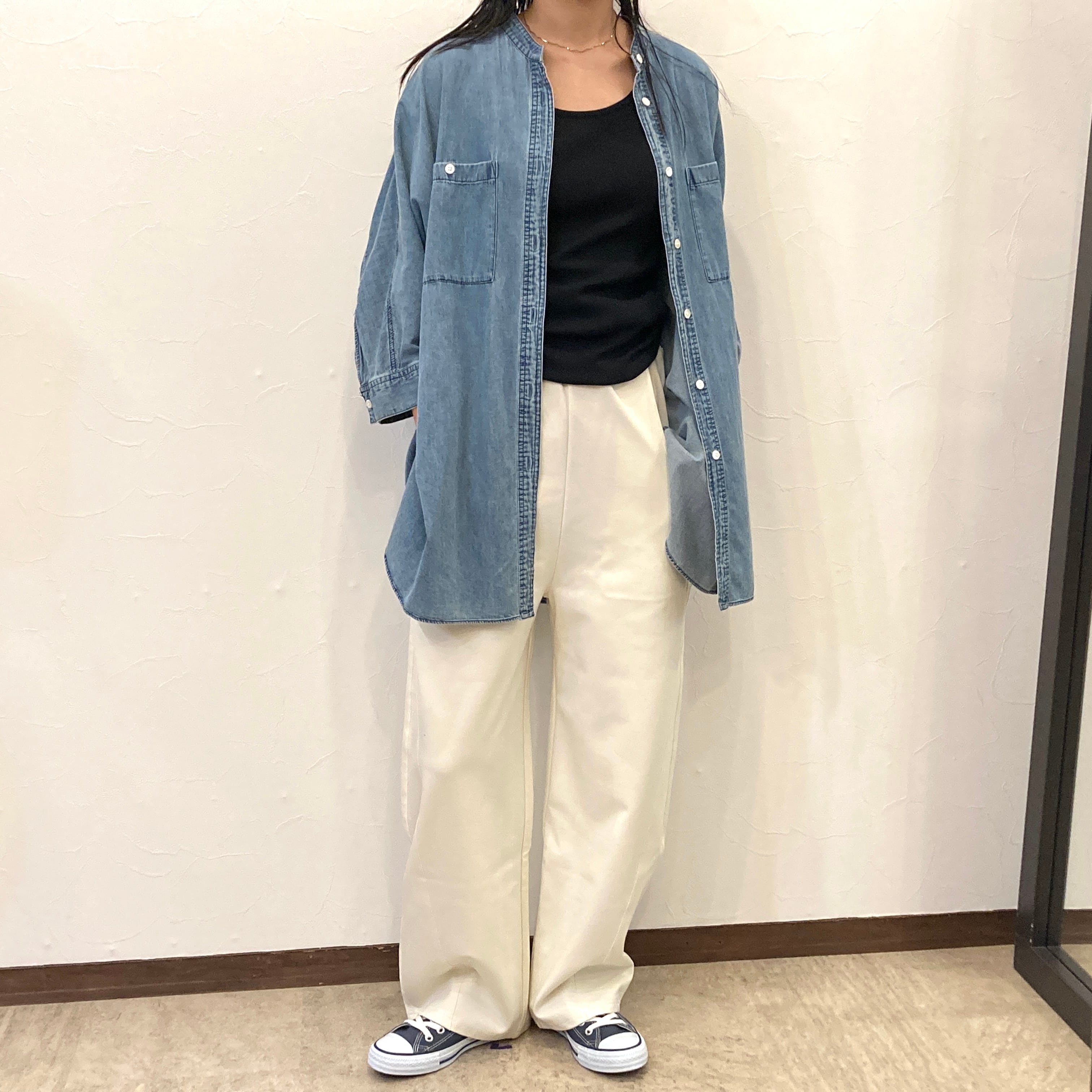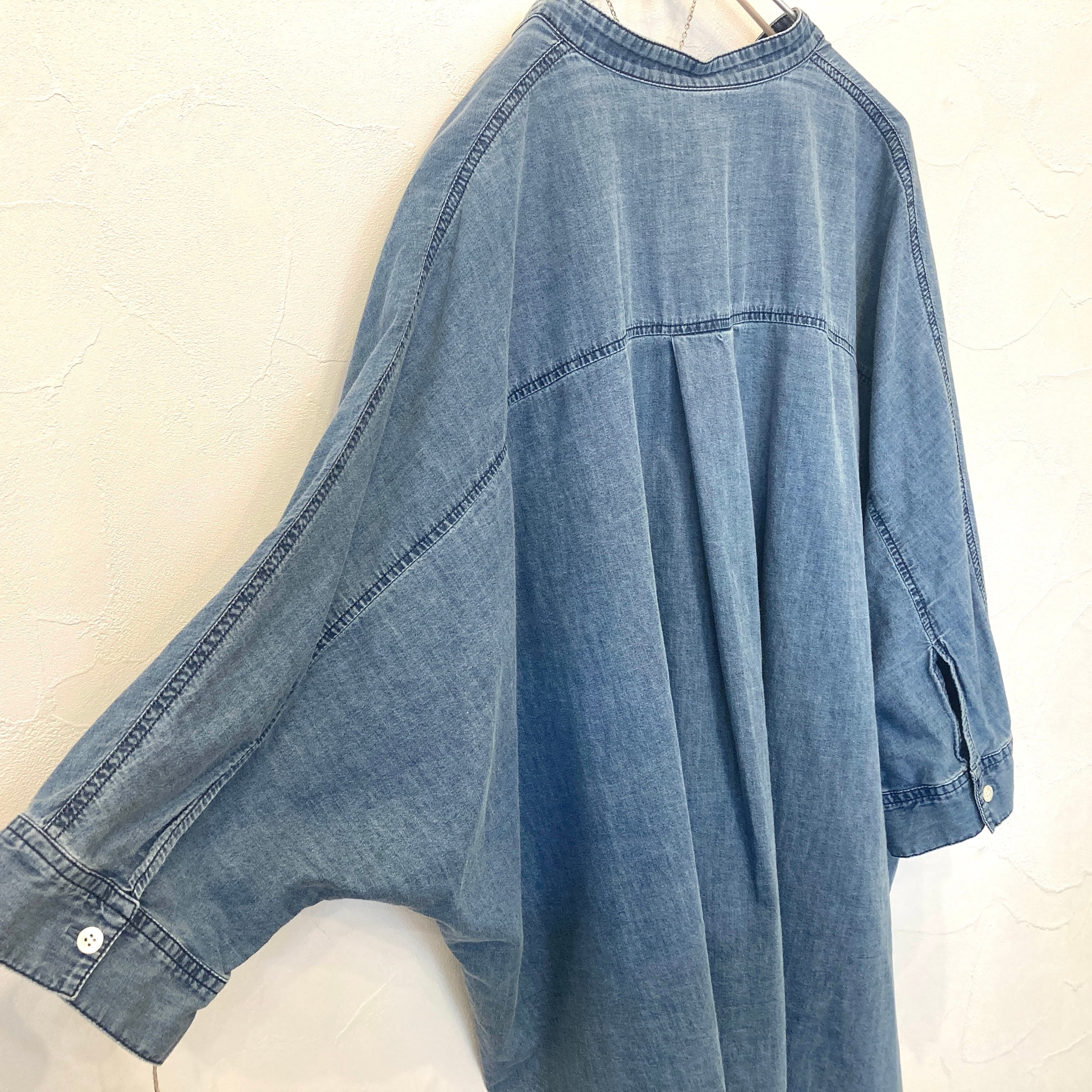 薄手の心地よいダンガリー素材を使用したバンドカラーシャツ。