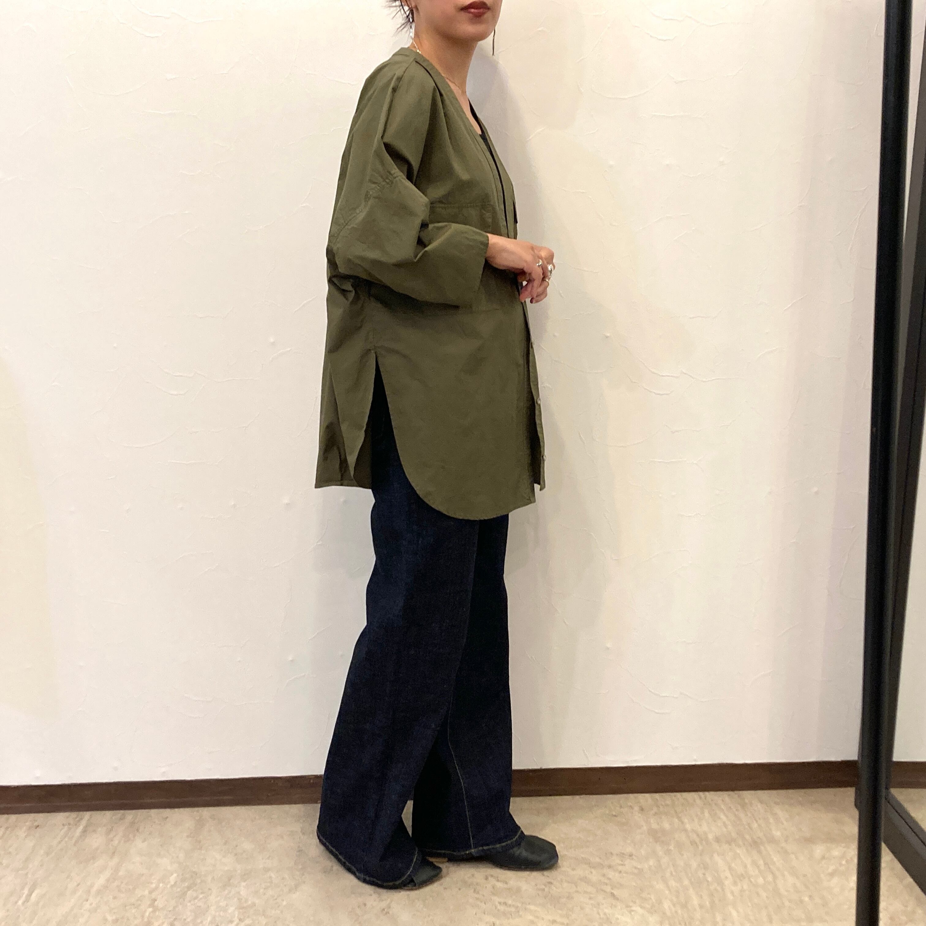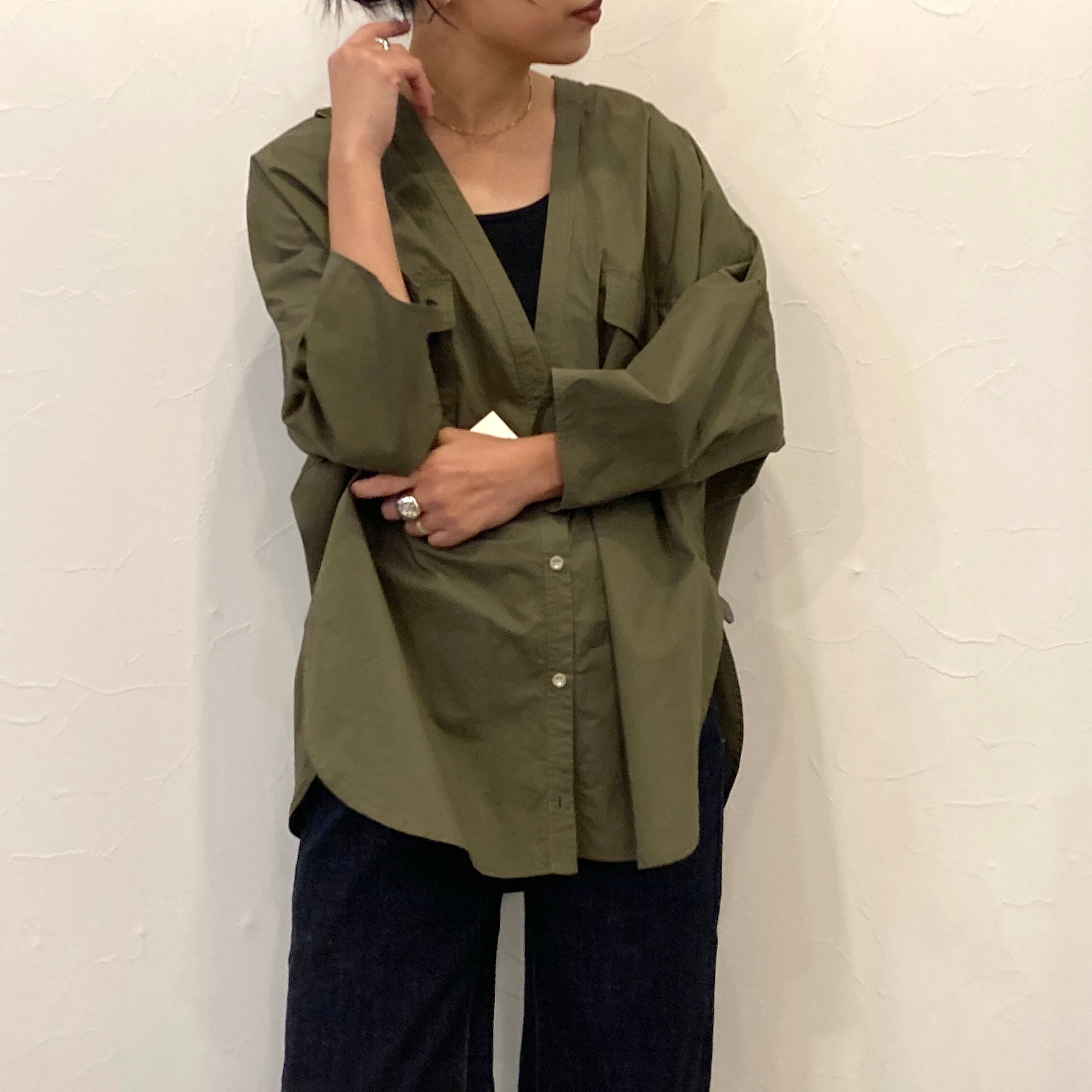 薄手のVネックシャツジャケットです。軽やかな素材感が特徴で、タンクトップやTシャツの上にさっと羽織るだけで、こなれたスタイルに仕上がります。サイドに深いスリットが施されているため、お洒落なシルエットを実現。タートルネックと合わせても素敵で、様々なコーディネートを楽しむことができます。