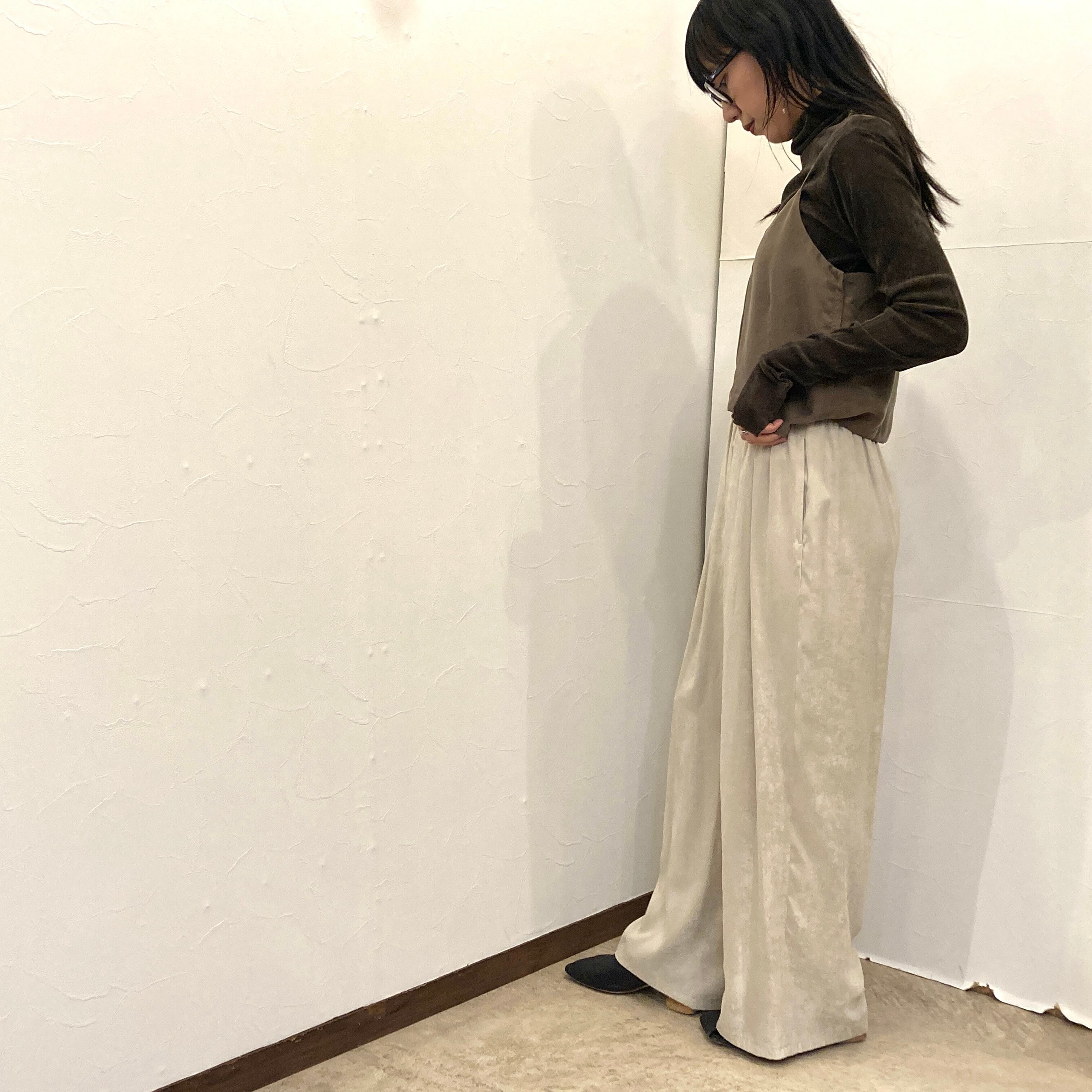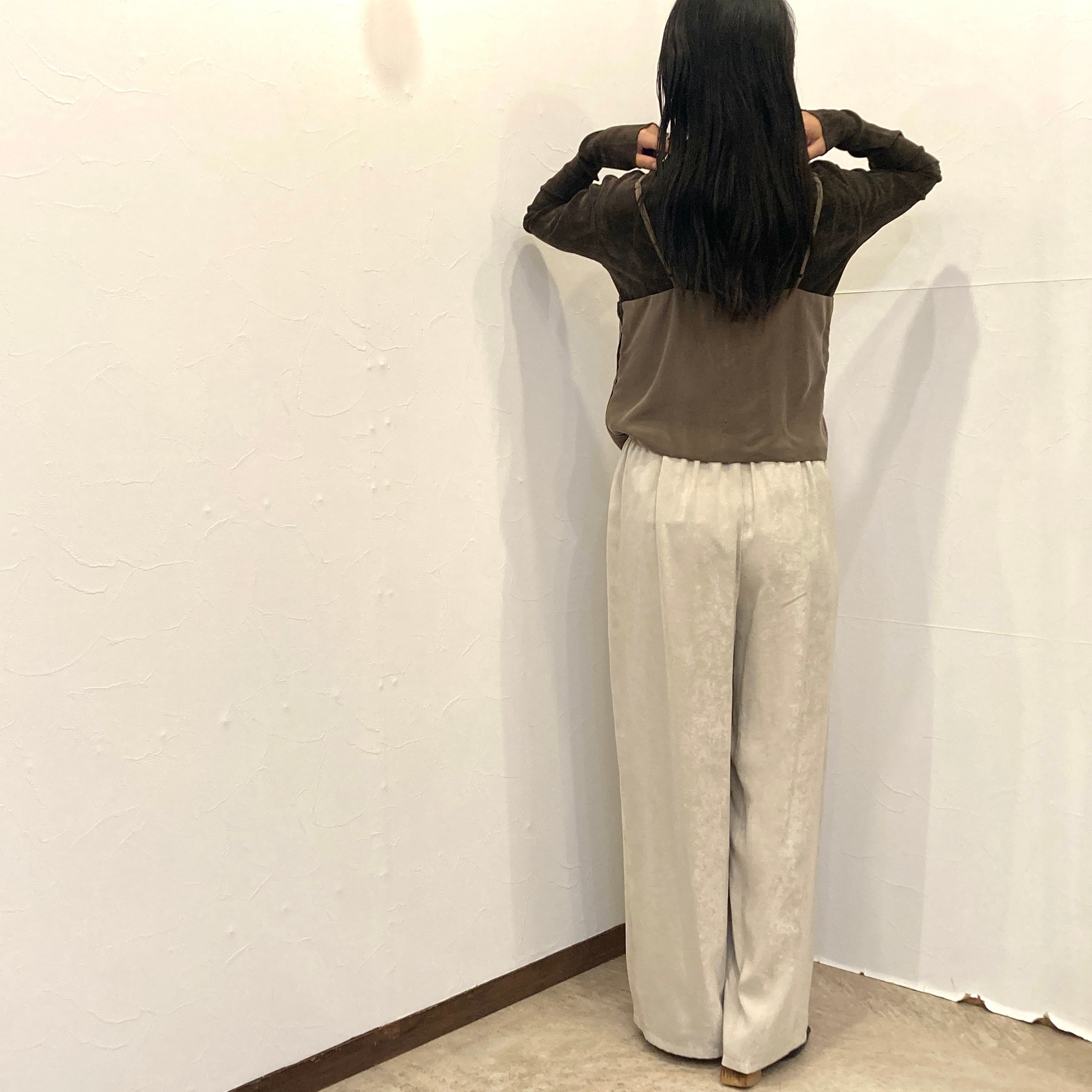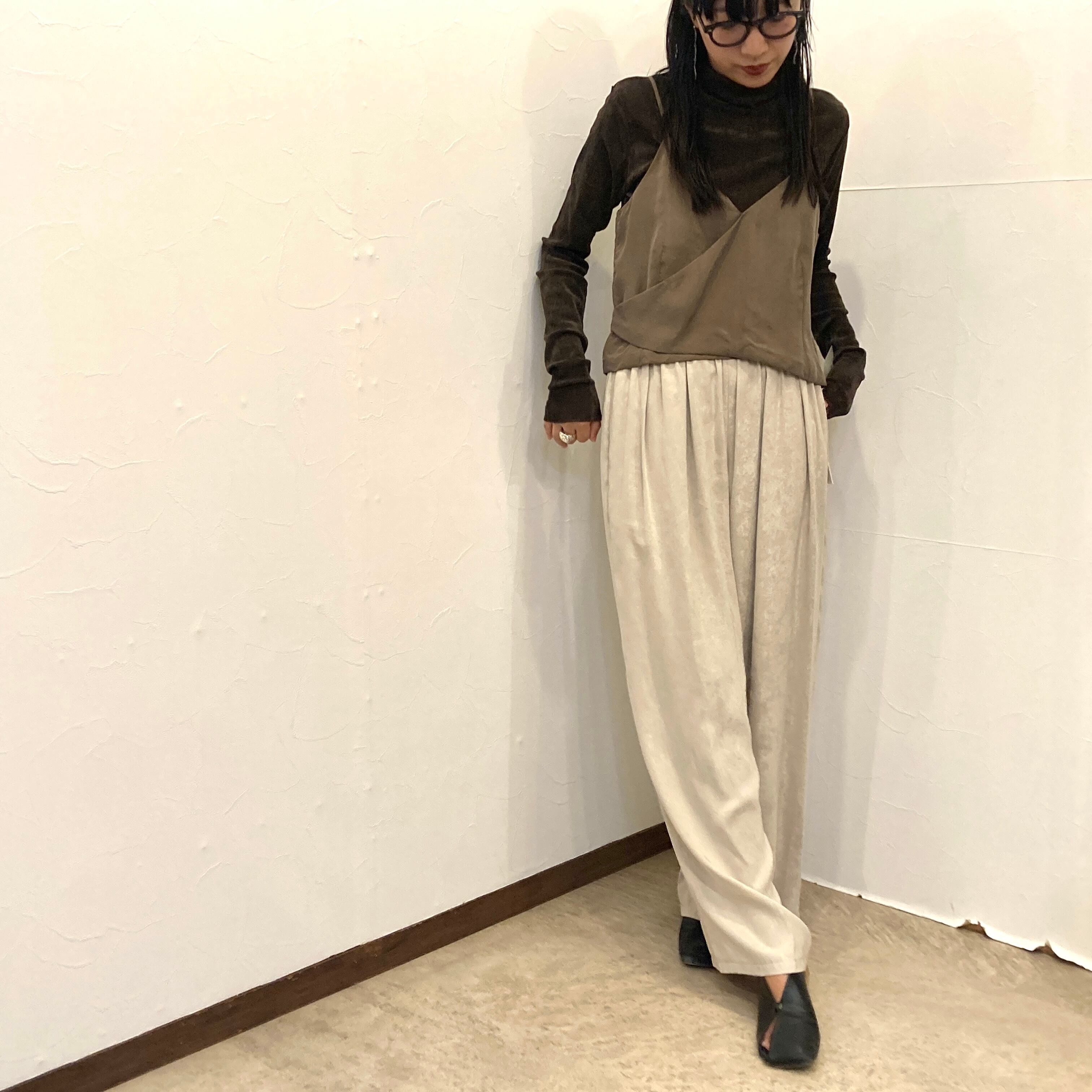 いろいろなコーディネートのアクセントとして大活躍するビスチェです。軽やかな素材感が特徴で、Tシャツやタートルネックの上に重ね着するだけで、一気にお洒落な印象に。デニムやパンツ、スカートとの相性も抜群で、同じ素材のパンツとのセットアップも素敵です。様々なスタイルに合わせやすく、毎日のコーディネートを楽しむことができます。