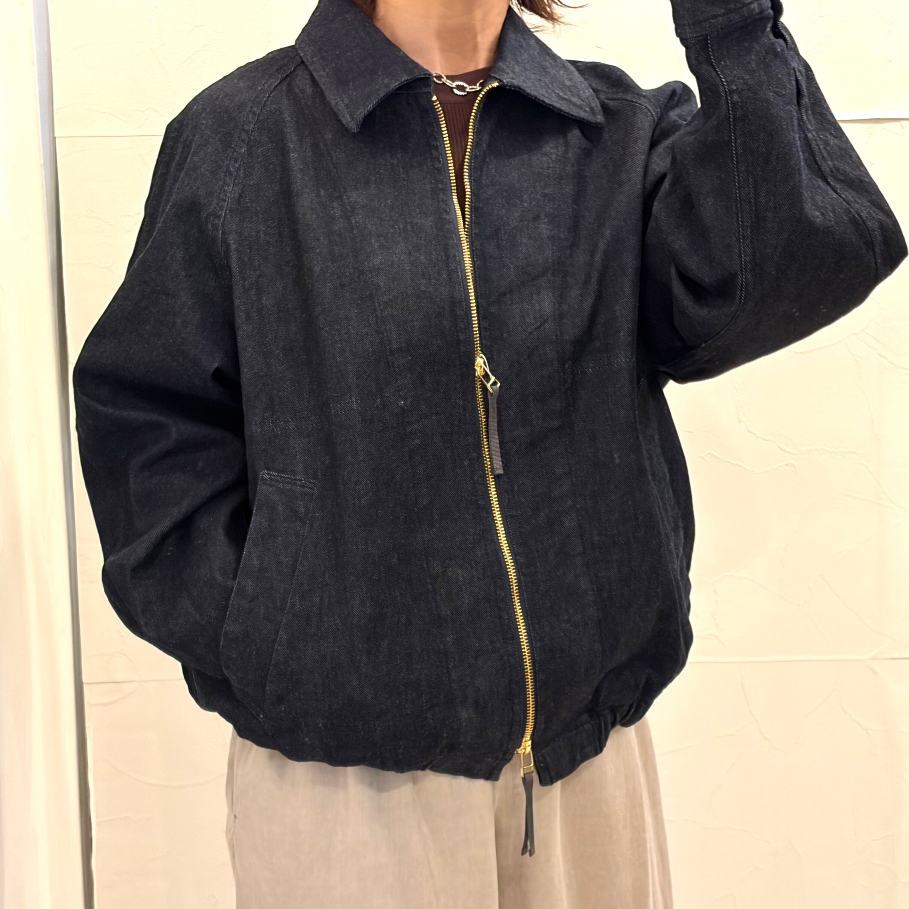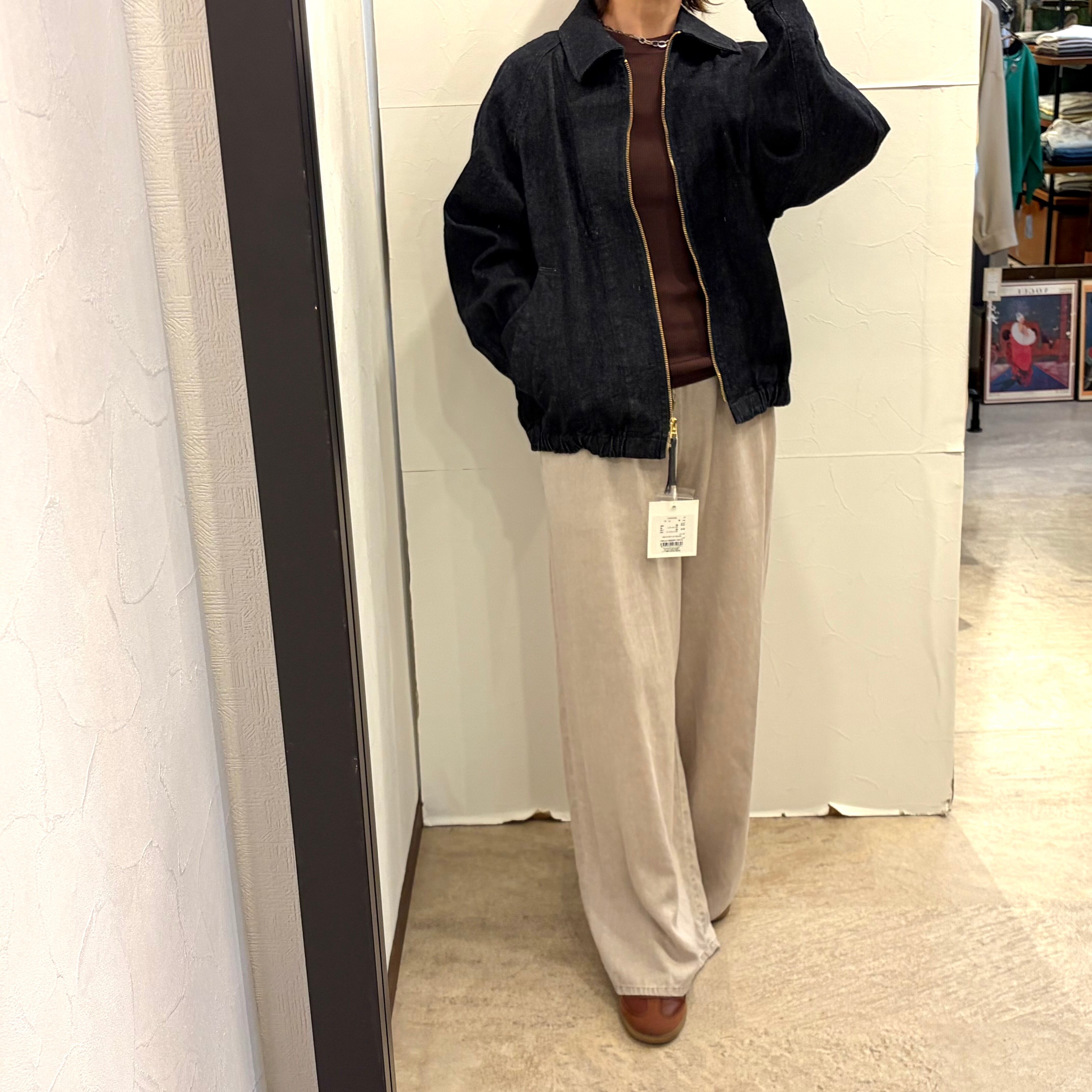 とても着やすいジップアップジーンズジャケットです!背中に施されたタックのデザインが特徴的で、シンプルながらもスタイリッシュな印象を与えてくれます。カジュアルなコーディネートはもちろん、さまざまなスタイルにも合わせやすく、デイリーユースに最適なアウターです。季節の変わり目に欠かせない一着です。