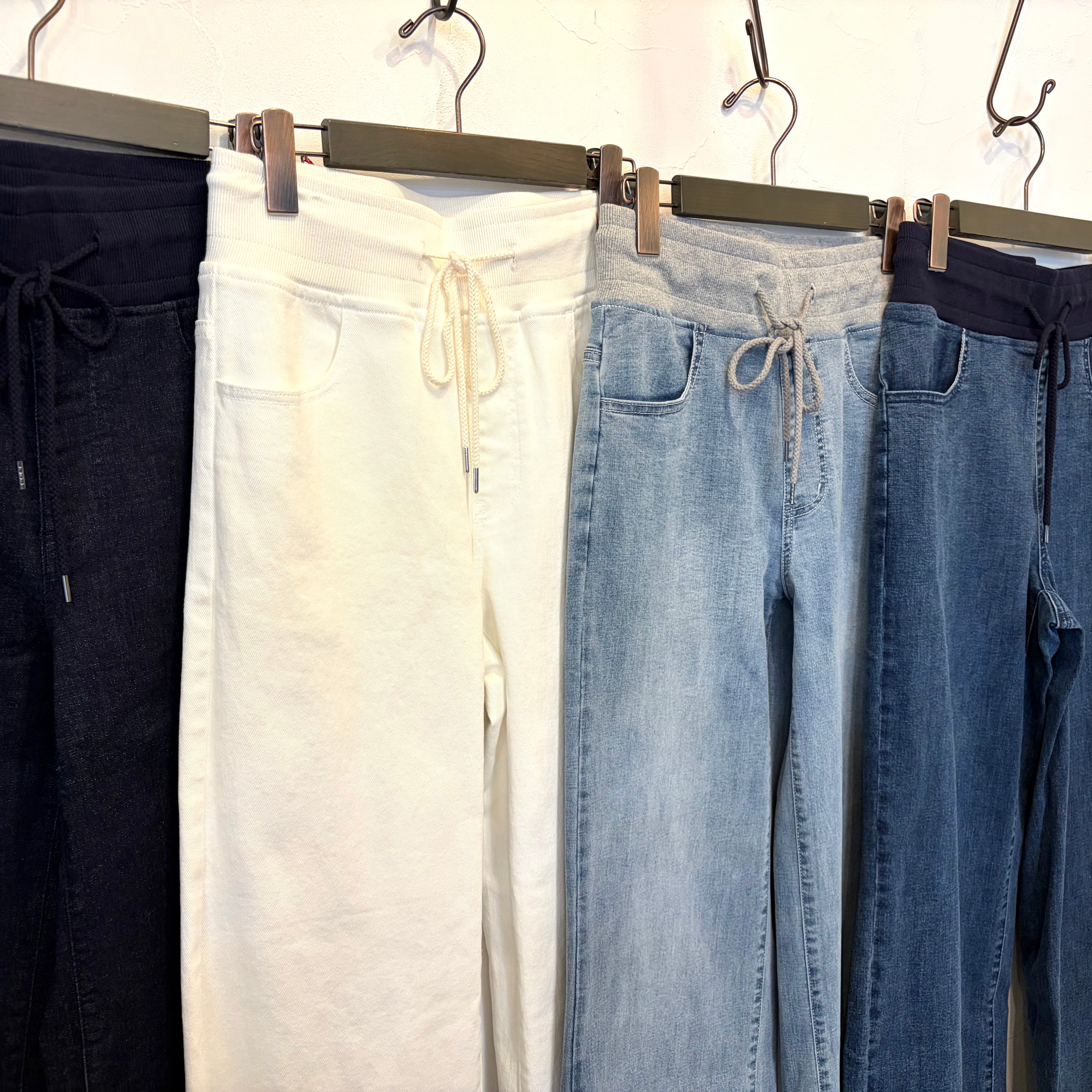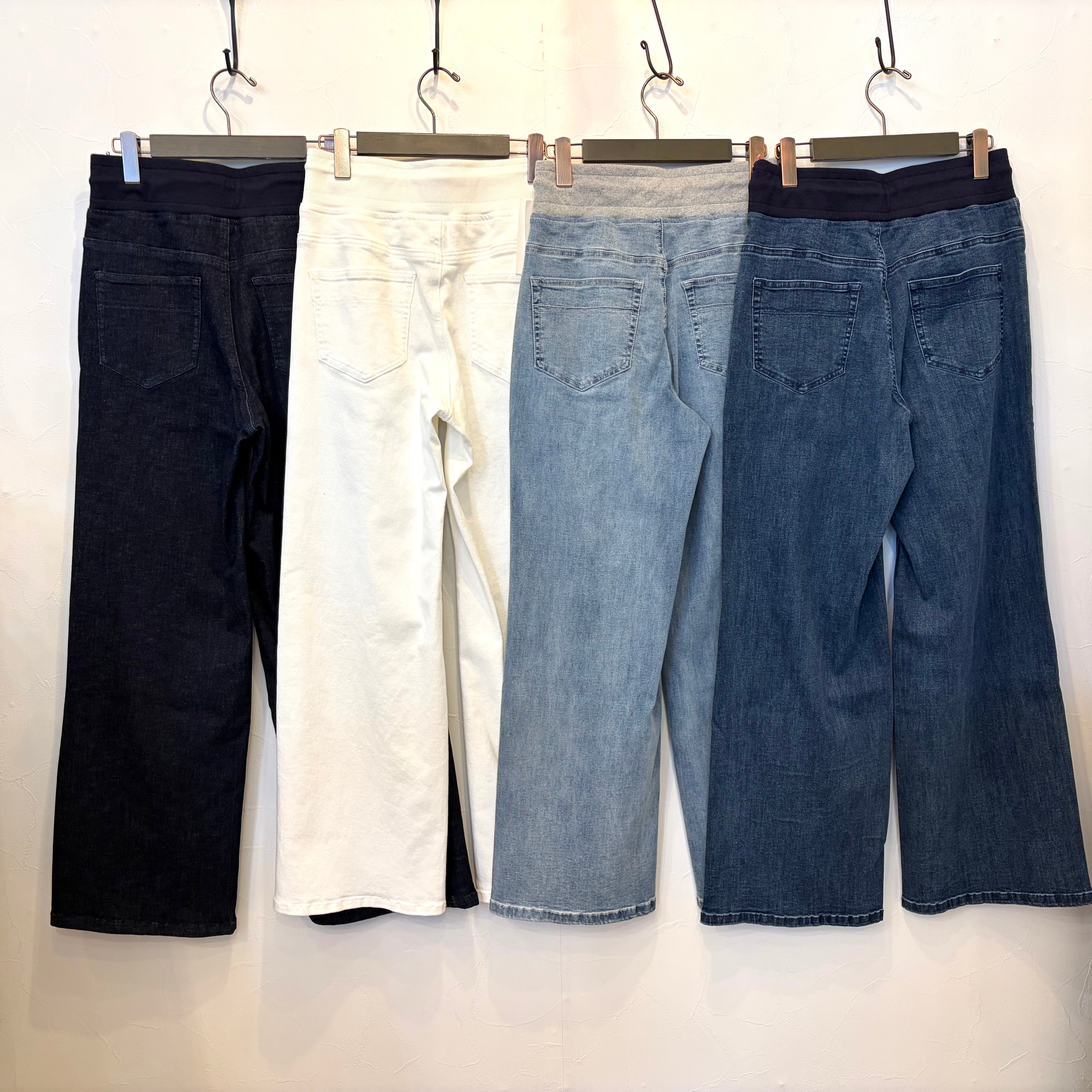 ウエスト部分の幅広いゴムデザインが魅力のデニムです!お腹まわりがとてもリラックスして履けるため、ストレスフリーな着心地を実現しています。さらに、全体的にストレッチが効いているため、シルエットもすっきりと見えとても人気のあるアイテムです。カジュアルなコーディネートにぴったりで、デイリーユースに美しいスタイルを演出してくれます。